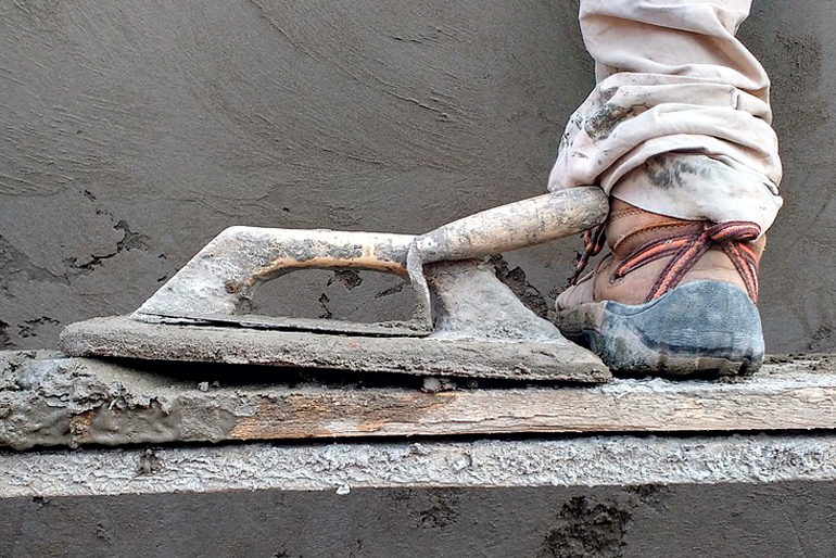 足場の上に道具や材料を一時的に置く場面があります。