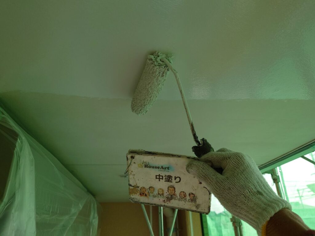 軒天は下からの湿気のダメージを受けやすく結露からカビが発生しやすい部位ですので、透湿性の高い防カビ塗料で塗装します。