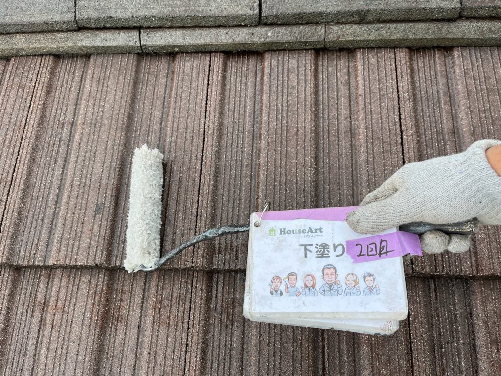今回屋根はセメント瓦で劣化が進行すると表面風化により撥水性が低下し水分を含み強度が落ちてしまい割れが発生してしまいます。既存劣化が酷かったので下塗りを2回塗装して下地をしっかり固め吸い込みムラを無くしてから中塗り、上塗り計4回塗りで仕上げました