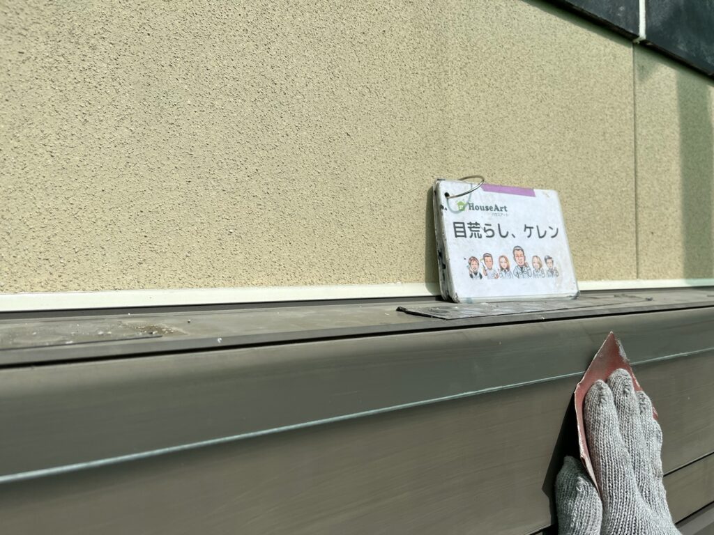 高圧洗浄後、工事中に発生する粉塵や塗料などを、塗装する箇所以外に飛散させないように養生を行います。