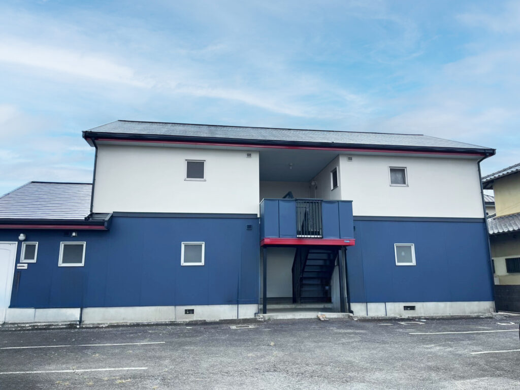 【アパート】ブルー系の外壁に赤のアクセントで爽やかな印象へ